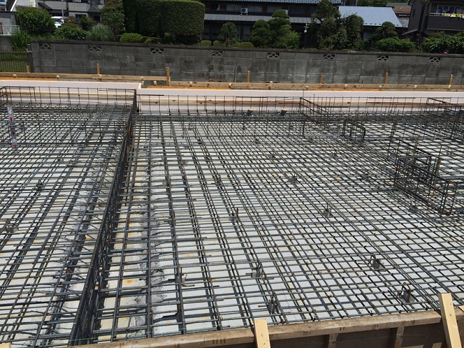 鉄筋の間隔は200㎜か250㎜間隔にもち網に組んでいきます。