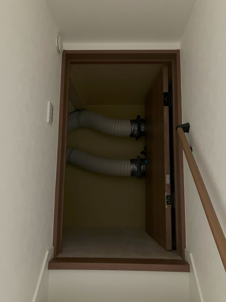 暗くて分かりづらいですが小屋裏の機械室になります。