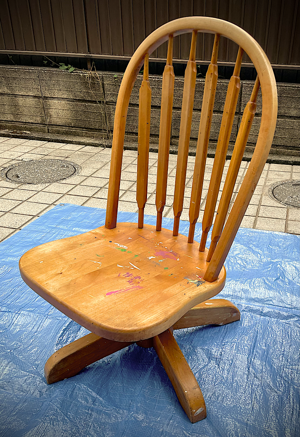 涼しくなったので休日にずっと使っている「民芸家具」の椅子をリメイクしてみました。