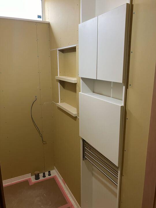 洗面所の壁にあらかじめ埋め込む形で取り付ける物です。