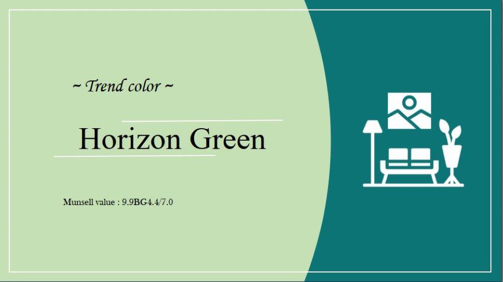 毎年12月に日本流行色協会(JAFCA)が来年の流行色を発表しているのですが、「2025年の色」としてホライゾングリーンが選定されました。この色はただの緑色ではなく、少し青みがかっているところが特徴的です。緑は自然の中の木などを表し、青は空や海などをイメージさせる色です。二つとも「自然とのつながり」を感じさせてくれる色合いですね。