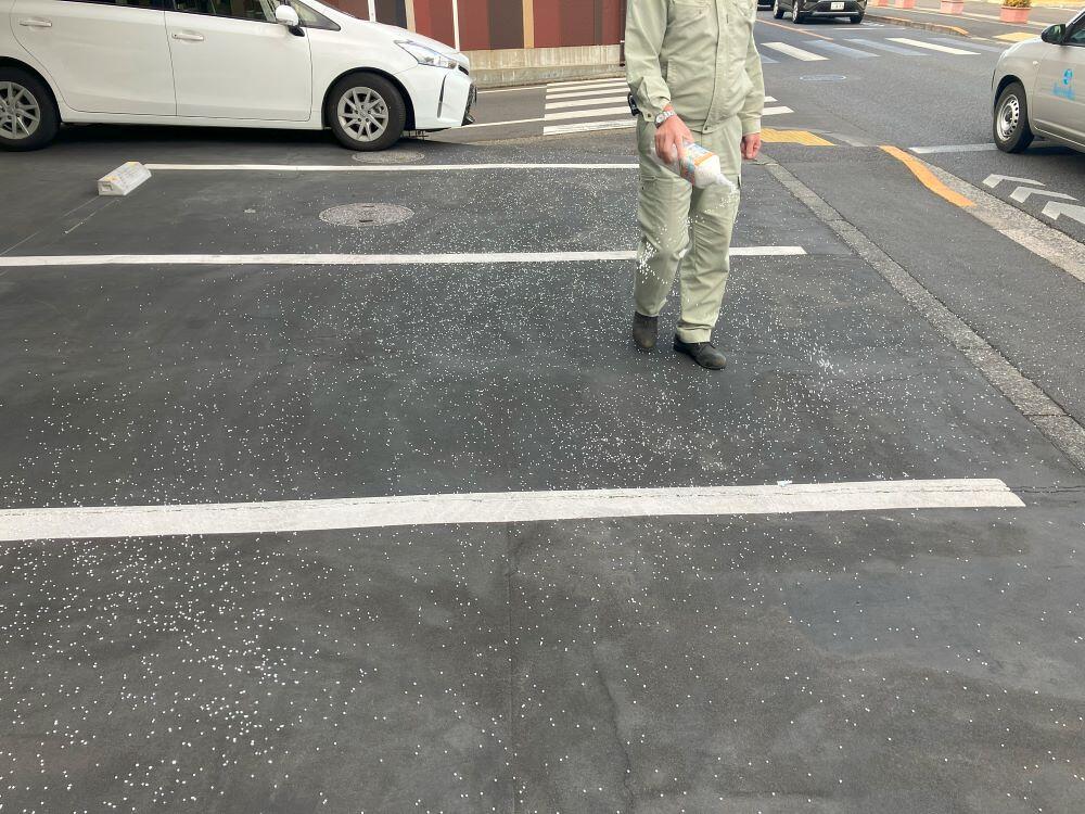朝から凍結防止剤を本社駐車場周りに撒きました。