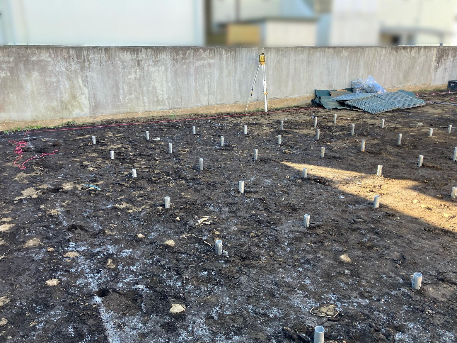 ここに土を盛り、砂利を敷き固め、建物の基礎になっていきます。