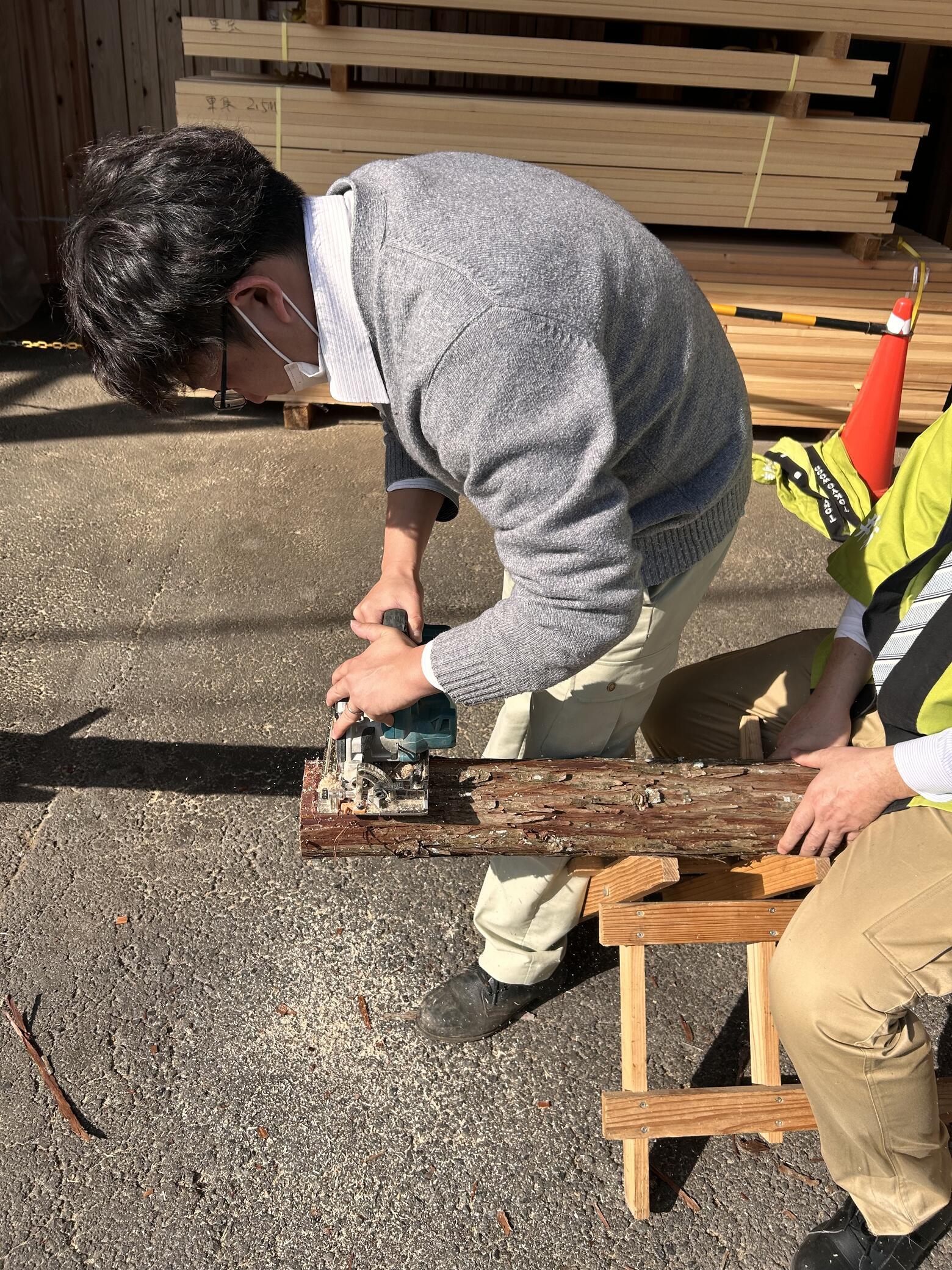 そのためには、先に切れ目を電動のこぎりで半分くらい入れておかないと、お客様も途中でくじけてしまいますので。(お客様は手動のこぎりです)