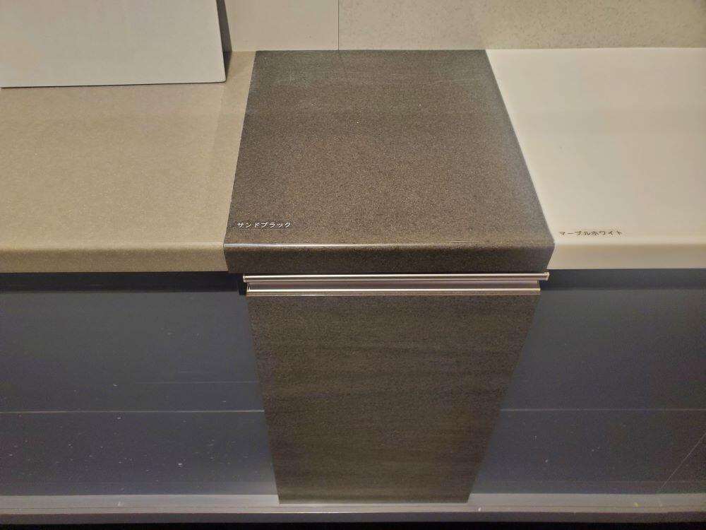 私はサンドブラック色のカウンターとグレーストーンの面材の組み合わせがとてもかっこよかったです。