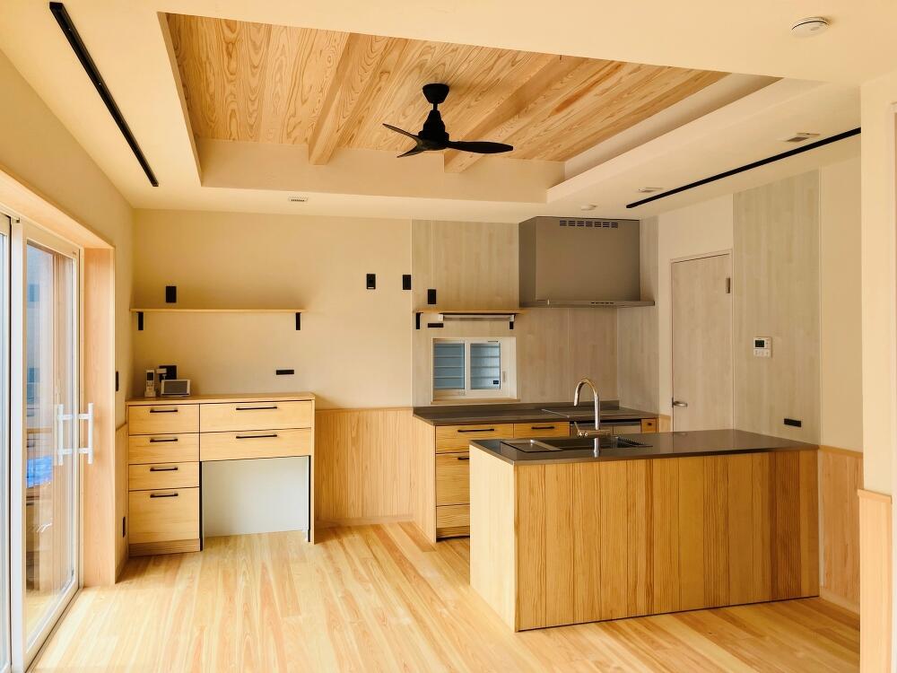 内装に無垢の腰壁の採用しておりました。