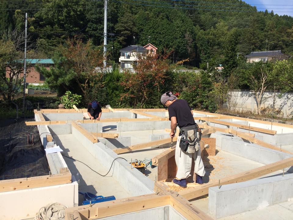 写真は、西多摩郡日の出町、原木市場のすぐ近くで上棟中のY様宅です。
