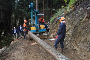 (林道整備の為の伐採を全員で見ました)