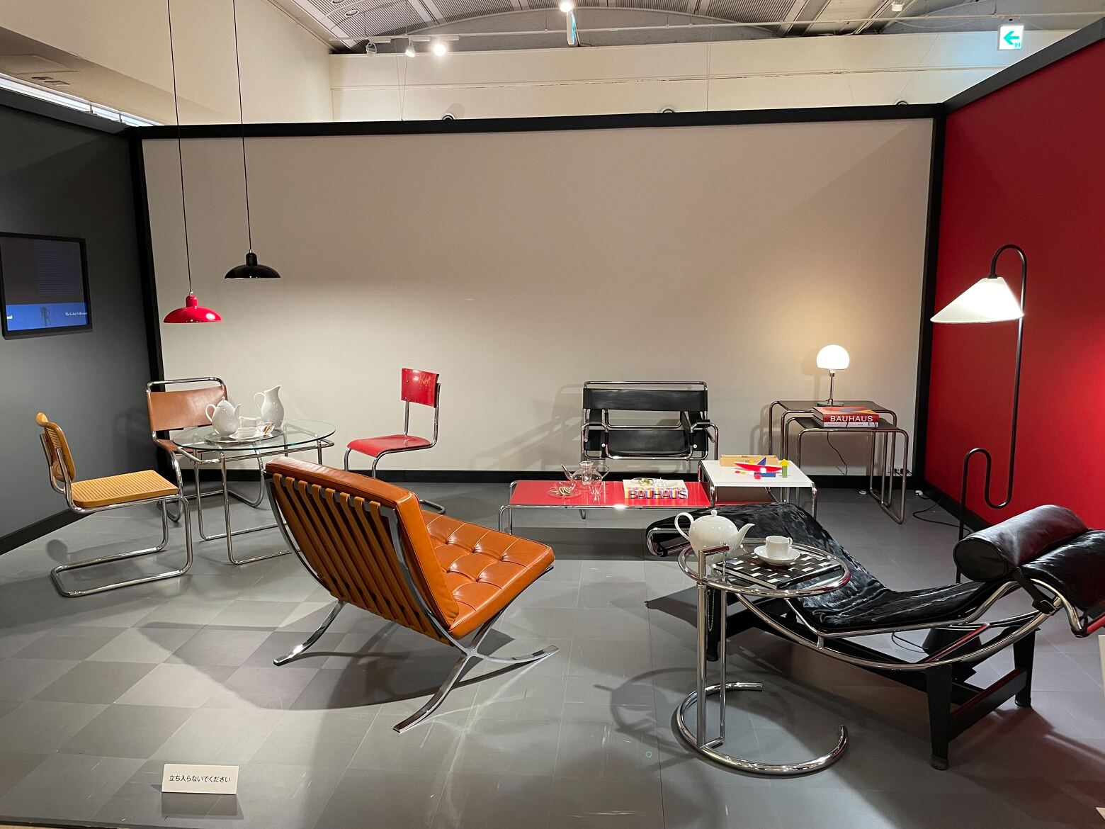 有名なバルセロナチェアやLCシリーズ、イームズチェアなどが展示してありココロオドリました