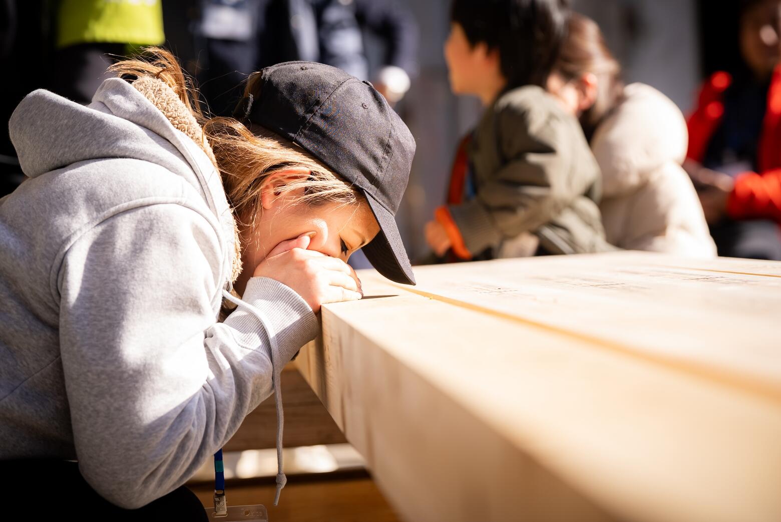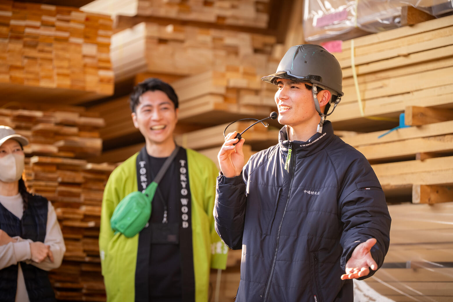 品質管理の工程では、機械を導入することで目視確認の精度が向上し、それがTOKYO WOOD の安心と信頼につながっていることを実感しました。また、高温乾燥と天然乾燥による木材の香りの違いには驚かされ、実際にその違いを体感していただきたいと感じました。最後には丸太切り体験を行い、切り終えた瞬間の達成感から、大人も子どもも笑顔があふれる素敵な時間となりました。