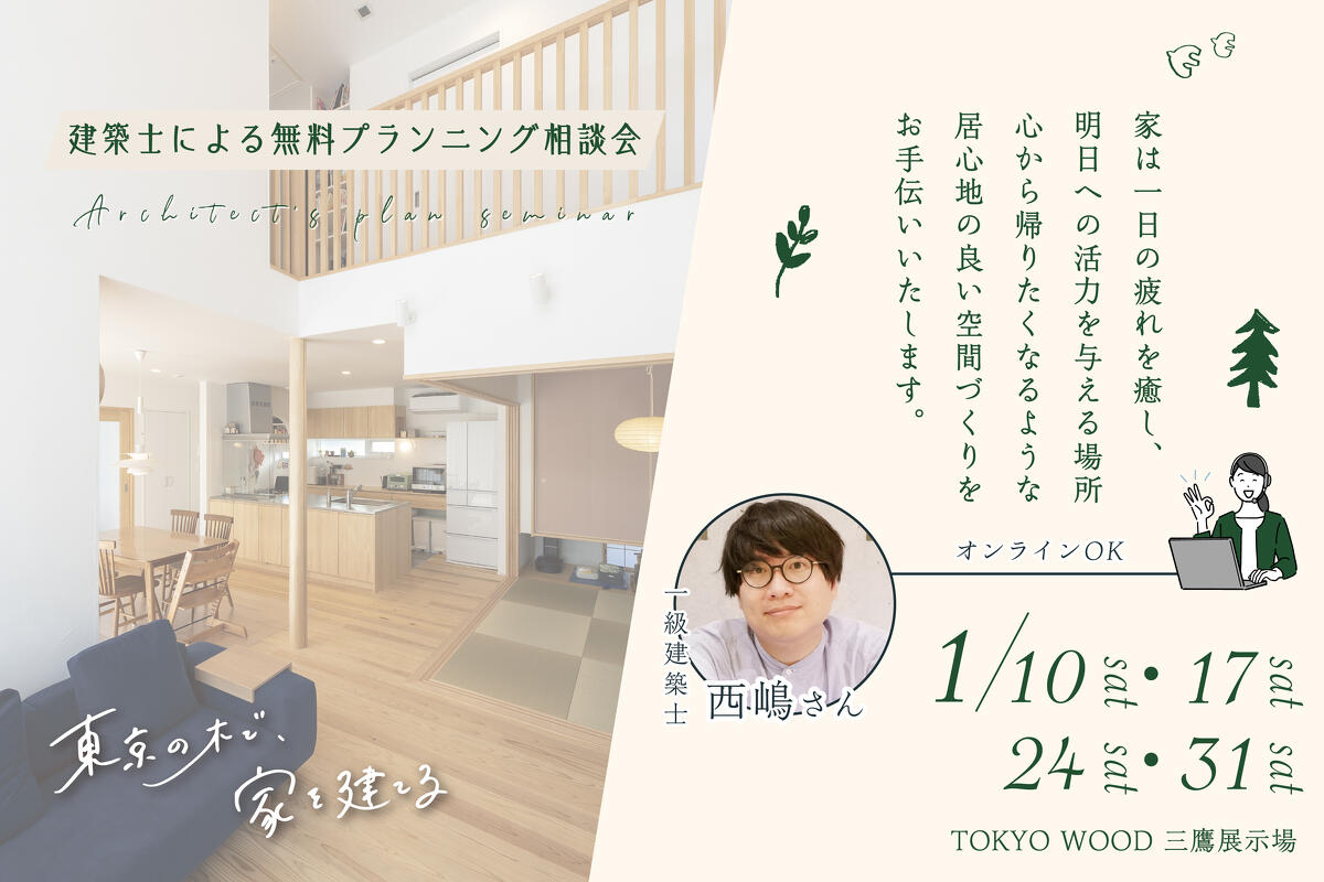 new 予約受付中 建築士による無料プランニング相談会 “夫婦・パパママ目線に立った丁寧な設計” 日程 2026/01/11・1/12・1/18・1/25 時間 10:00~・13:00~・15:00~
