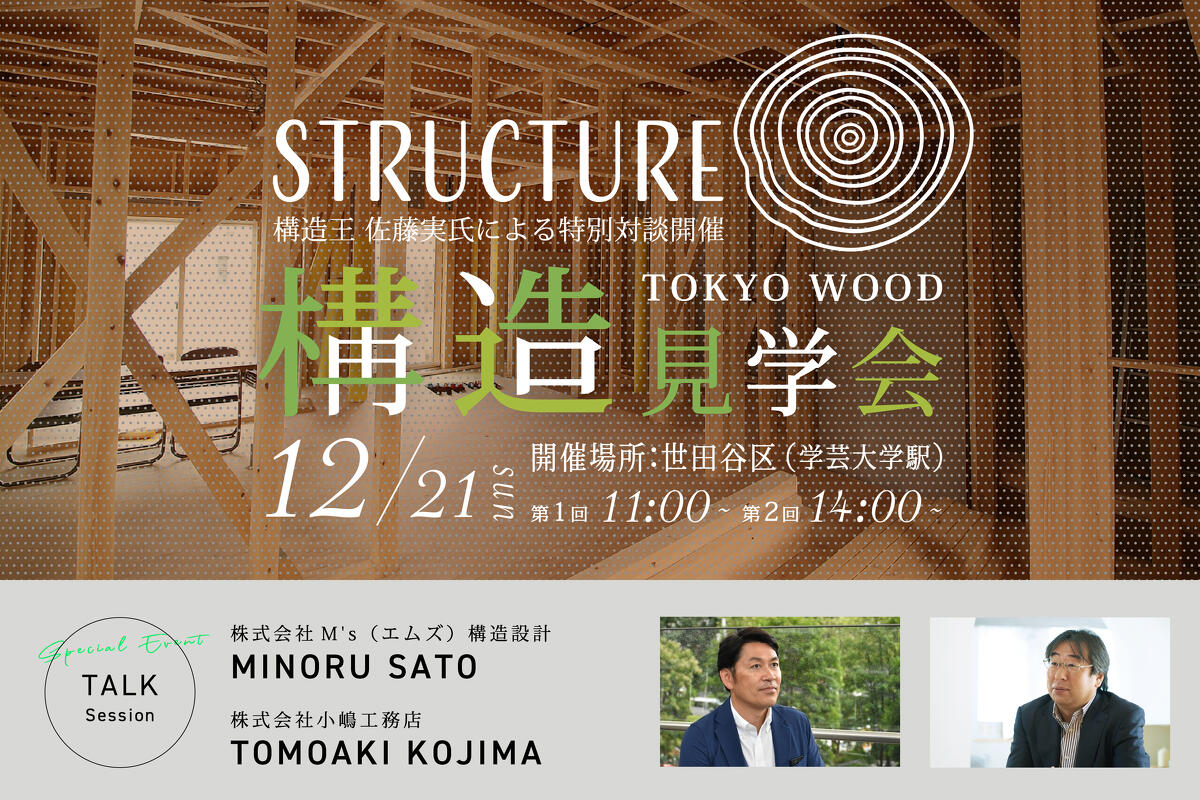 new 予約受付中 都内トップクラスの性能 TOKYO WOODの家 構造見学会&構造王 佐藤実氏×代表取締役社長 小嶋智明 トークセミナー@世田谷区 日程 2025/12/21 時間 11:00~・14:00~