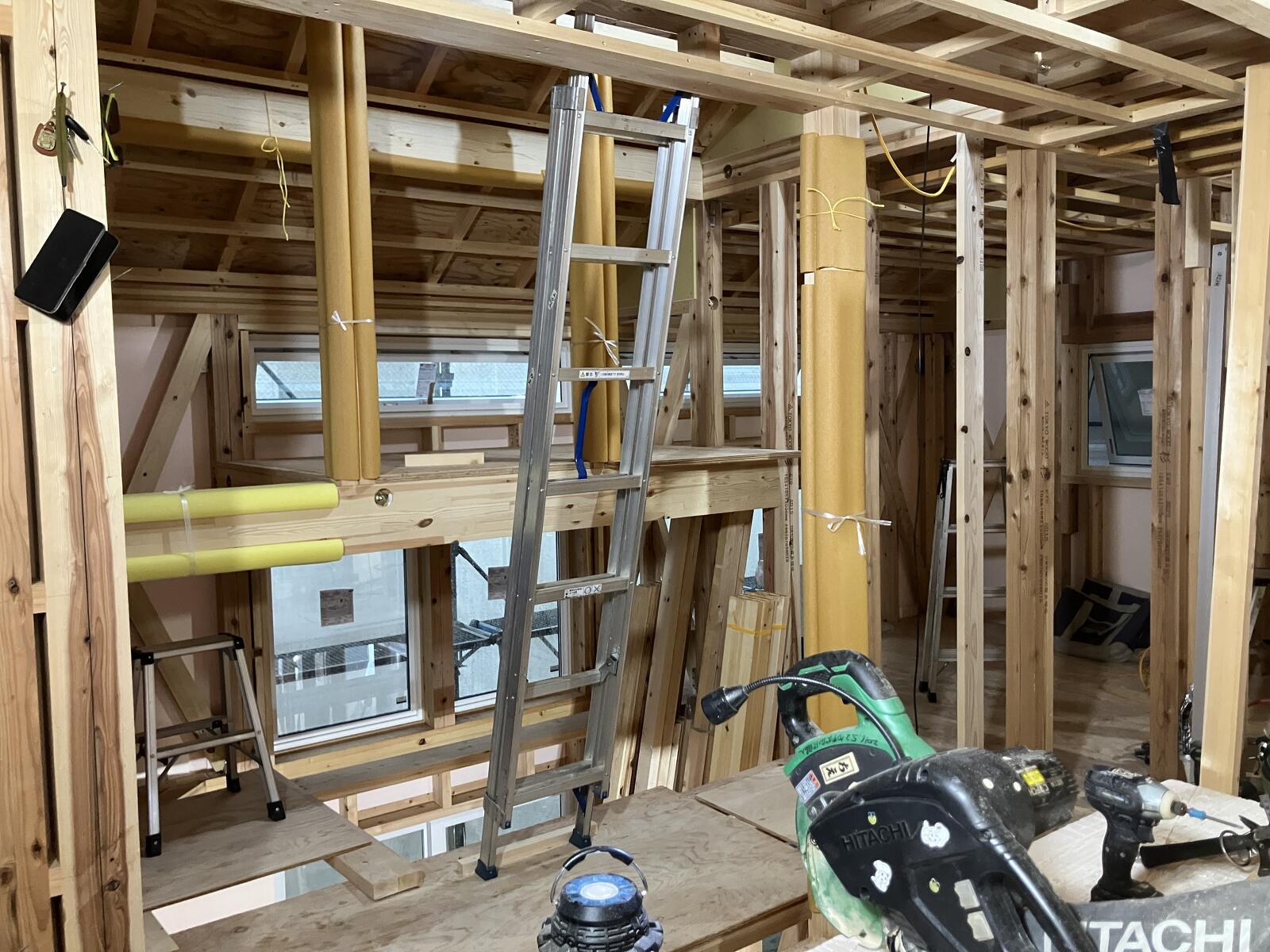 さらに、船乗りだった亡きお父様への想いをかたちにするため、丸窓や船のデッキを思わせるバルコニーをお母様がご希望。外壁は和の趣を感じさせる塗り壁に、室内は珪藻土仕上げで自然素材を採用するなど、随所にご家族の想いが息づいています。設備面にも配慮しながら、ご家族の想い出とこれからの暮らしがつながるように設計されたオンリーワンの住まい。当日はオーナー様も立ち会ってくださり、数あるハウスメーカーの中から小嶋工務店を選んだ理由、家づくりに込めた想いなどお話しいただく予定です。そんな家づくりの最中を体感いただける建築現場に、ぜひ足を運んでみてください。