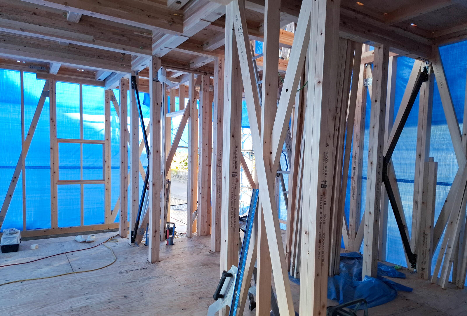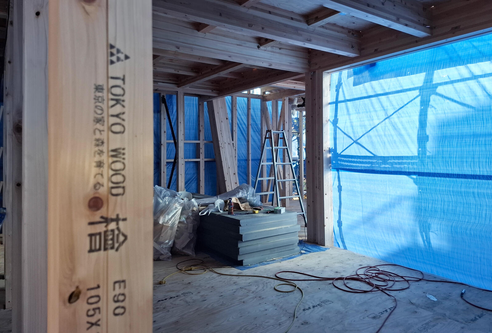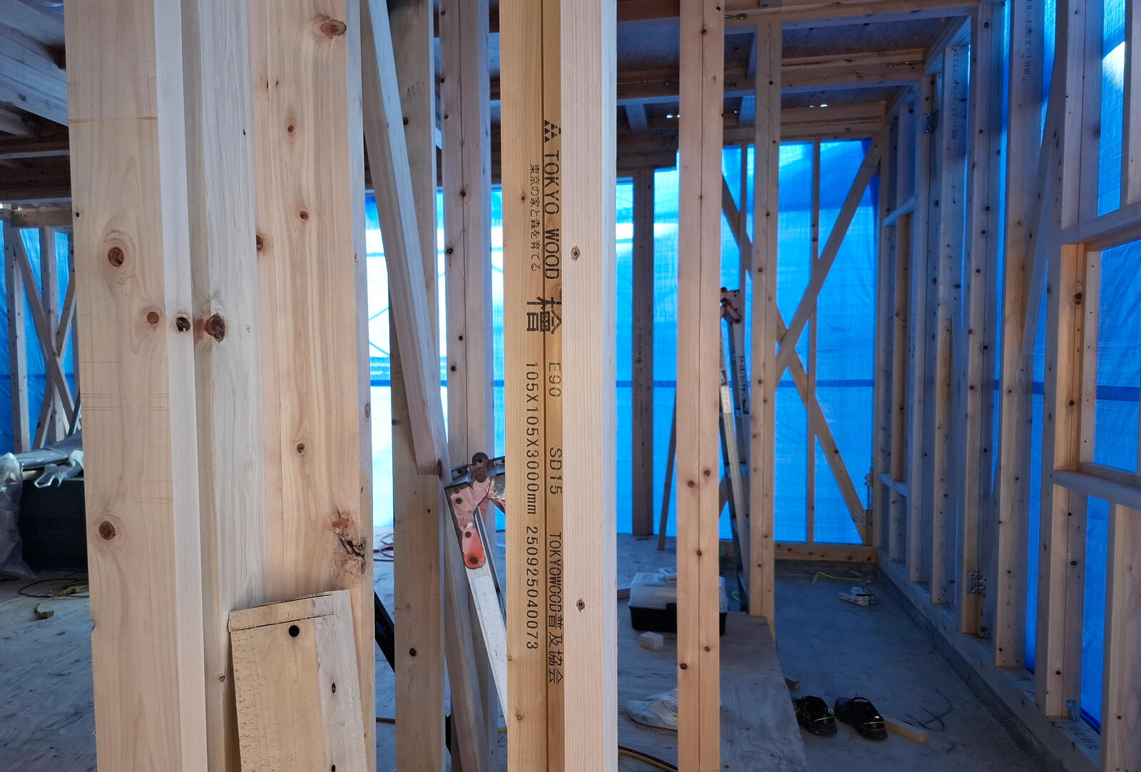 昭島市で建築中の「TOKYO WOODの家」の構造見学会を開催します。完成後には見ることのできない“家の骨格”をご覧いただけます。夏の熱射や冬の寒さからご家族を守る断熱材の施工も、実際の現場でご確認いただけます。東京の木で家を建てる「TOKYO WOODの家」は、東京・多摩の森で大切に育てられ、樹齢60年を迎えた木を伐採し使用する、地産地消を大切にしたサステナブルな建築です。構造材には、じっくり時間をかけて自然の力で乾燥させた天然乾燥の檜を用いており、その美しい色艶ややさしい香り、そして確かな強さを備えた、上質な素材を丁寧に選び抜いています。