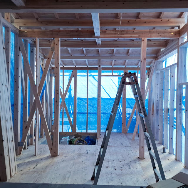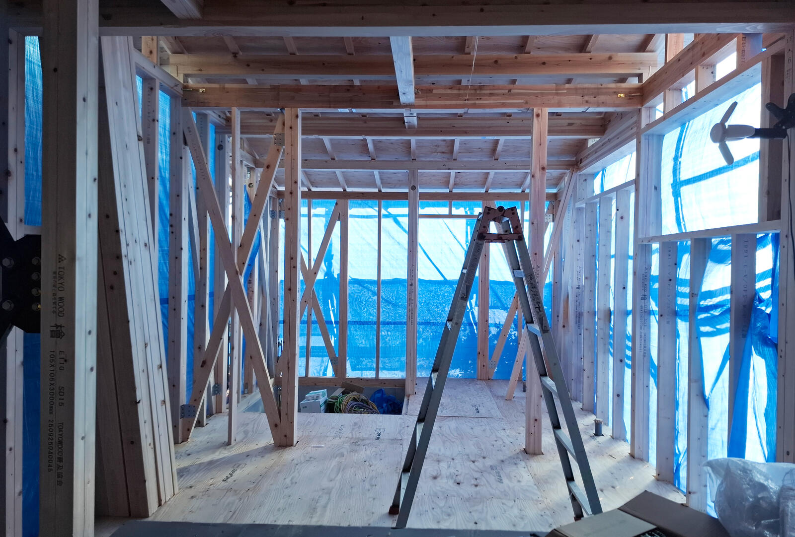 屋根の勾配をゆるやかにすることで、実際のサイズよりものびやかに感じられる外観に。素材の質感をそのまま生かしたシンプルなデザインは、まわりの景観にもやさしく溶け込みます。現場をご覧いただくことで、図面だけでは伝わらない“空気感”や“広がり”を感じていただけます。家族の声をひとつひとつ丁寧に重ねながら、日当たり・視線・動線を計算し尽くしたプラン。建築中の現場で実際に体感していただきながら、「ここに立ったとき、どんな光が入るか」「どんな距離感が心地いいか」をご体験いただければと思います。