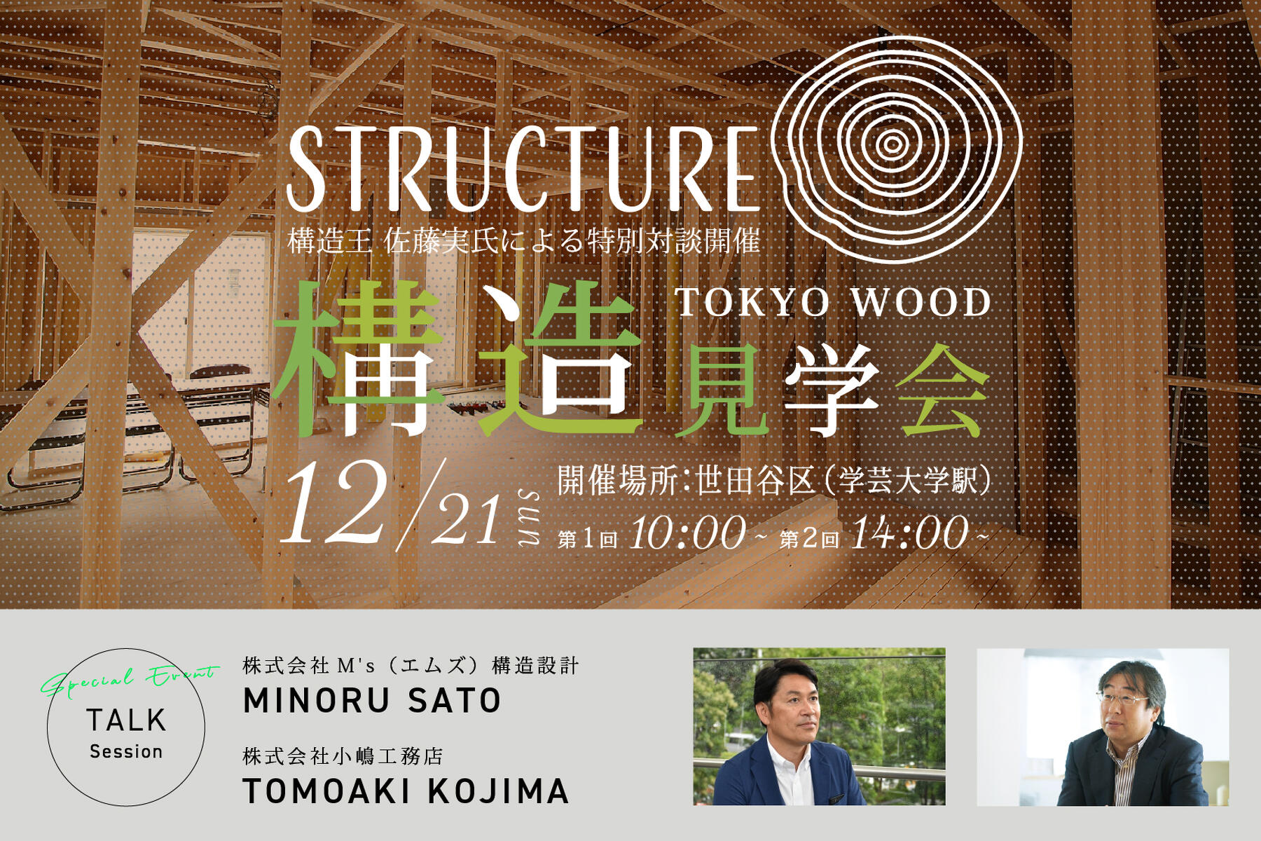 世田谷区で建築中の住まいをご覧いただける構造見学会を開催します。今回の見学会では、東京都内でもトップクラスの住宅性能をご確認いただけます。東京多摩の森で育った樹齢60年の木材「TOKYO WOOD」をはじめ、許容応力度計算による耐震等級3・断熱等級6・東京ゼロエミ水準Bを取得予定の住まいで、制振装置「evoltz(エヴォルツ)」も採用しています。また、構造計算の第一人者として知られる佐藤実氏によるトークセミナーも開催。構造や耐震について、家づくりに役立つお話を聞いていただけます。お客様のより良い家づくりのために企画した見学会です。ぜひご参加いただき、小嶋工務店の家づくりの裏側をご覧ください。