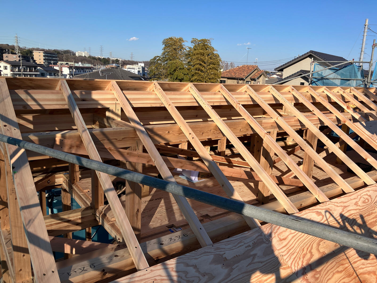 オーナー様のご厚意により、八王子市で建築中の「TOKYO WOODの家」の構造見学会&気密測定会を開催します。完成後には見ることのできない“家の骨格”をご覧いただけます。夏の熱射や冬の寒さからご家族を守る断熱材の施工も、実際の現場でご確認いただけます。東京の木で家を建てる「TOKYO WOODの家」は、東京・多摩の森で大切に育てられ、樹齢60年を迎えた木を伐採し使用する、地産地消を大切にしたサステナブルな建築です。構造材には、じっくり時間をかけて自然の力で乾燥させた天然乾燥の檜を用いており、その美しい色艶ややさしい香り、そして確かな強さを備えた、上質な素材を丁寧に選び抜いています。