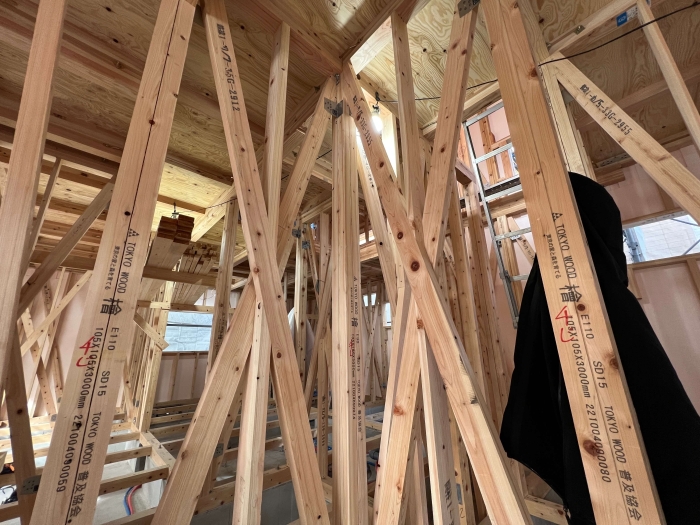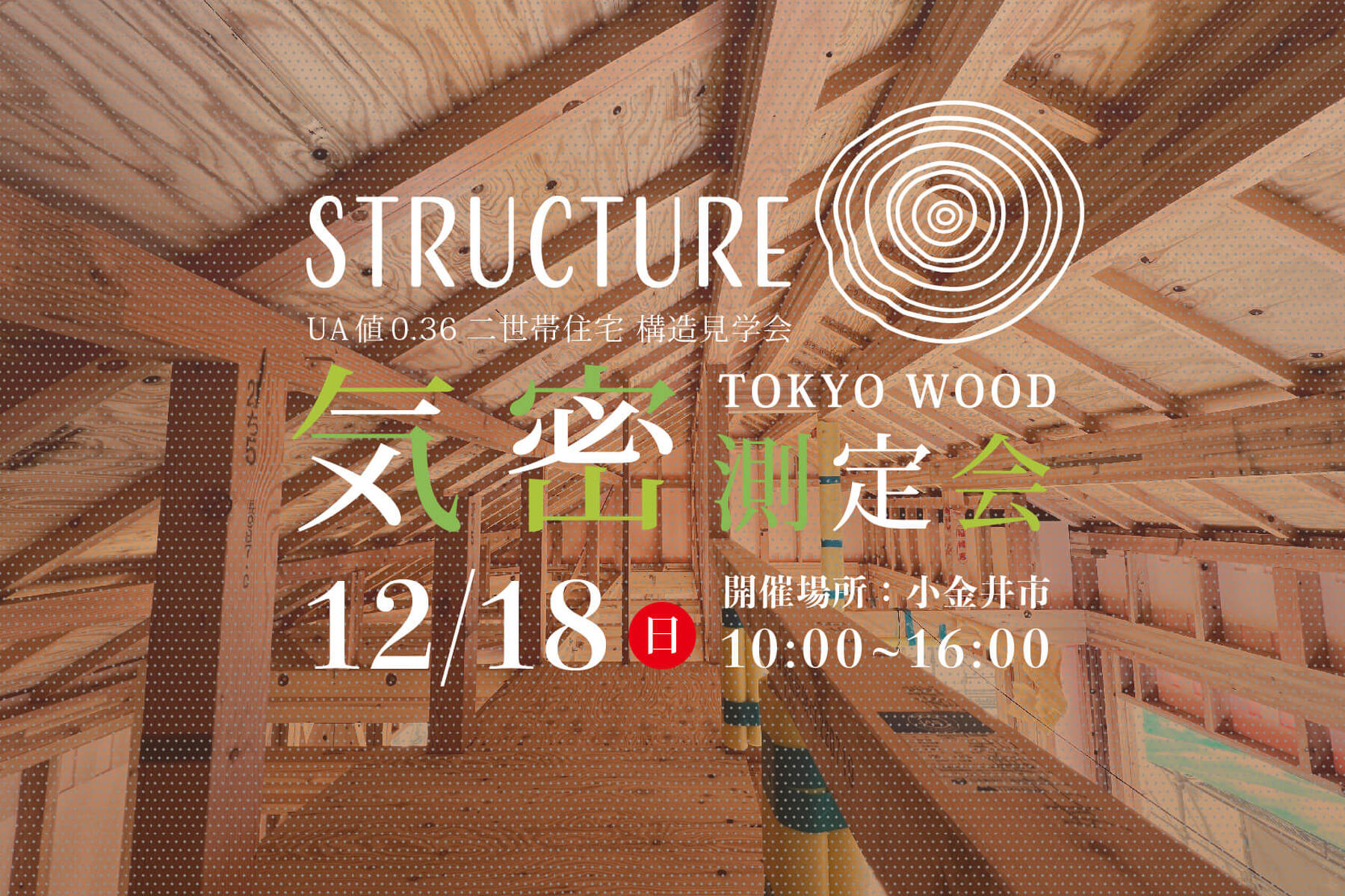 建物の施工担当の白濱棟梁からは「気密性能0.2を目指したい」とのお言葉です。結果は・・・丁寧な施工があってこその高気密!現場でご確認ください!当日は、TOKYO WOODのきれいな木目の構造もご覧頂けます。ぜひ測定会&見学会へお越しください。