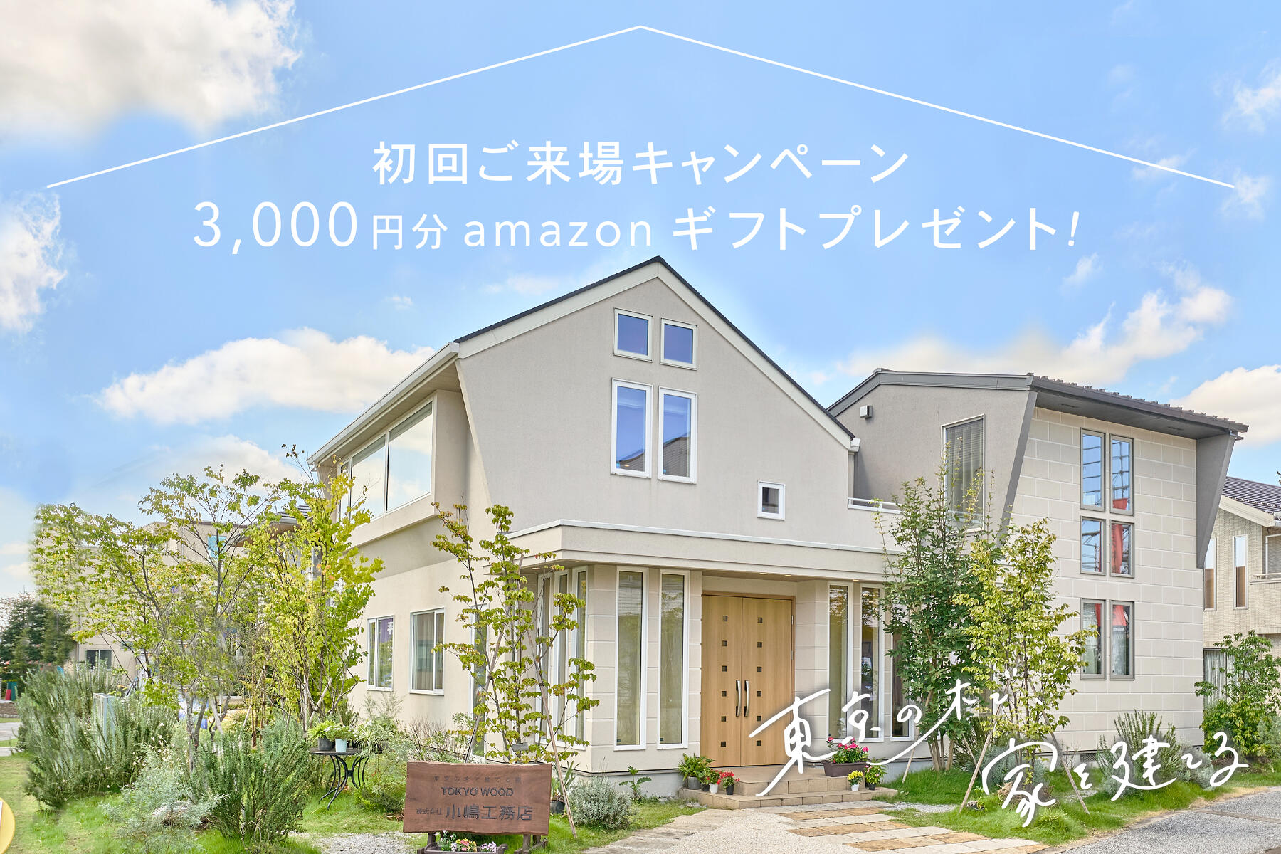 amazonギフト¥3,000分をプレゼント(過去に小嶋工務店のモデルハウスにご来場いただいた方はプレゼント対象外となります)