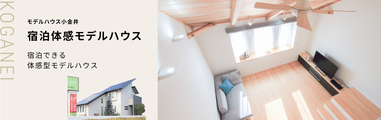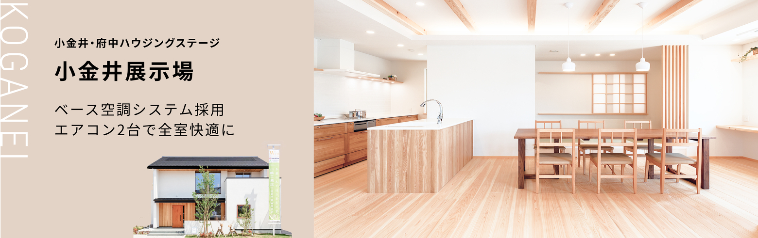 小金井市の小嶋工務店本社の向かいにございます。オリジナルのブランド材「TOKYO WOOD」を使い、ソーラーサーキット工法を採用した快適な住み心地はもちろん、玄関の土間から木の“うんてい”で洗面脱衣室・洗濯室や浴室へとゲーム感覚で移動できる楽しい仕掛けや、中庭に面した、リゾートのような円形の浴槽を配した浴室、外からの視線を気にせずBBQが楽しめるデッキなど、遊び心がたっぷり盛り込まれたプランもお楽しみいただければと思います。