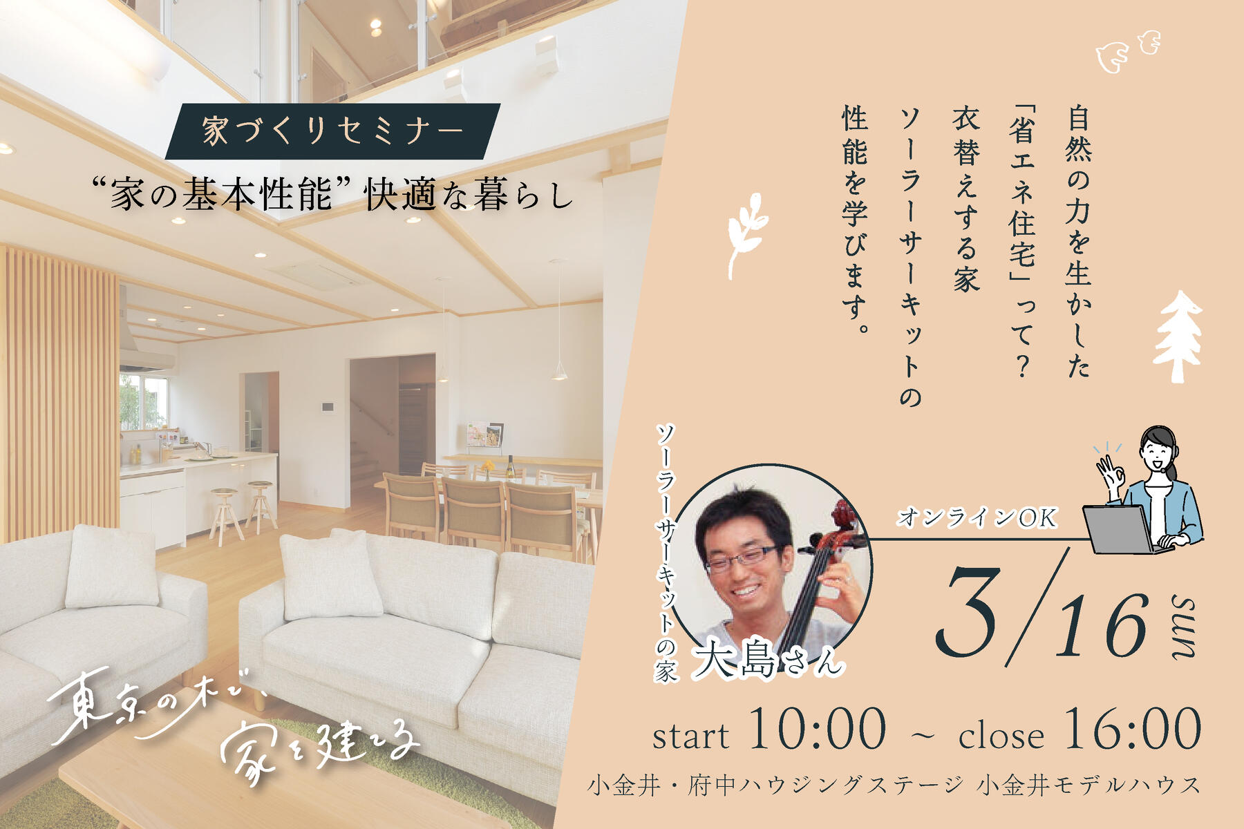 新しいお住まいを考える上で、エアコンの設置台数によって電気代は大きく変動します。講師を務める大島様は実際に小嶋工務店でお家を建てられ、ソーラーサーキットの家で暑い夏も、寒い冬も快適に過ごされています。実際のオーナー様としての立場でもあり、気になる質問になんでもお答えいたします。