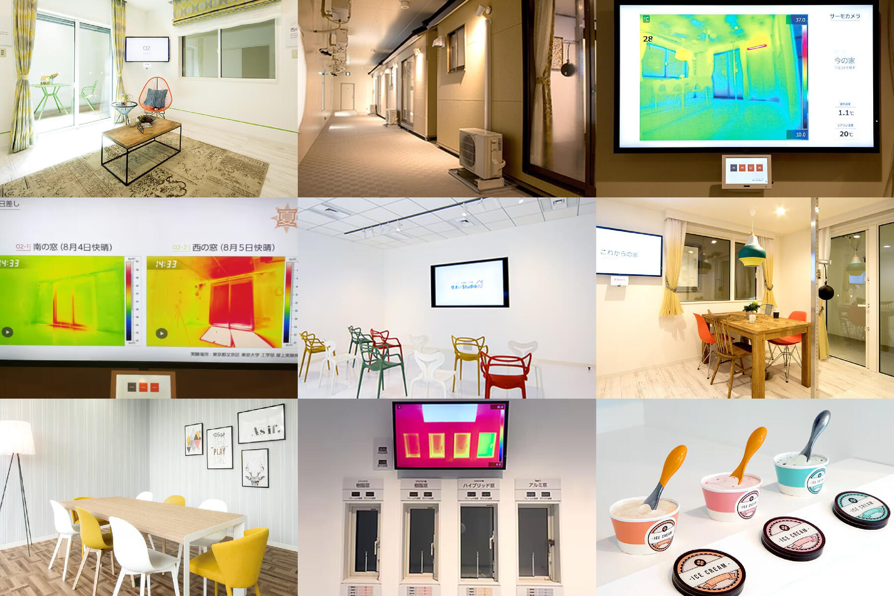 住宅の断熱性能の違いによる冬の室内温度の感じ方や、夏の強烈な陽射しの対処方法など、一年を通して快適に暮らすために必要な知識を学べる「体験型ショールーム」です。