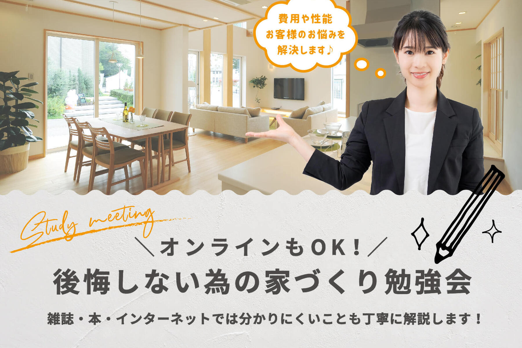 小嶋工務店の勉強会は、皆さんの疑問にプロがわかりやすくお答えする、絶対後悔しないための『家づくり勉強会』です。原則オンラインの勉強会ですが、対面をご希望の方もご対応させていただきます。