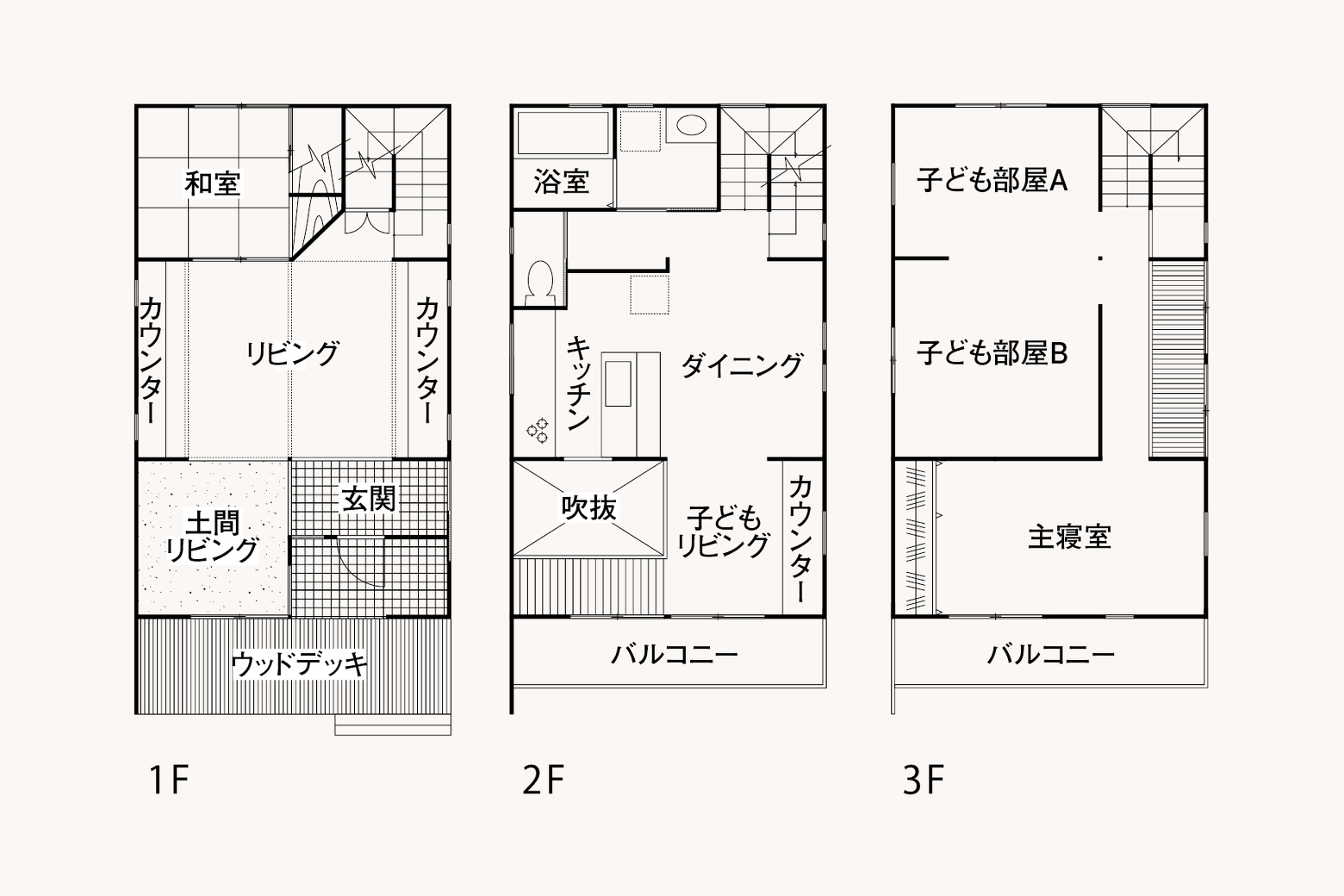 2017年に東京都の「木の香る多摩産材住宅普及事業」に選定、多摩産材の温もりの中で、自然を楽しむ快適な暮らしを提案しました。2棟あるうちのA棟は若い世帯向けの3階建て、構造材、内装材はもちろんのこと、バルコニーの手摺りや壁も多摩産材。B棟はシニア層向けにLDK〜和室~寝室~水まわりが、すべて引き戸で段差なくつながる安心のバリアフリー設計を採用しています。
