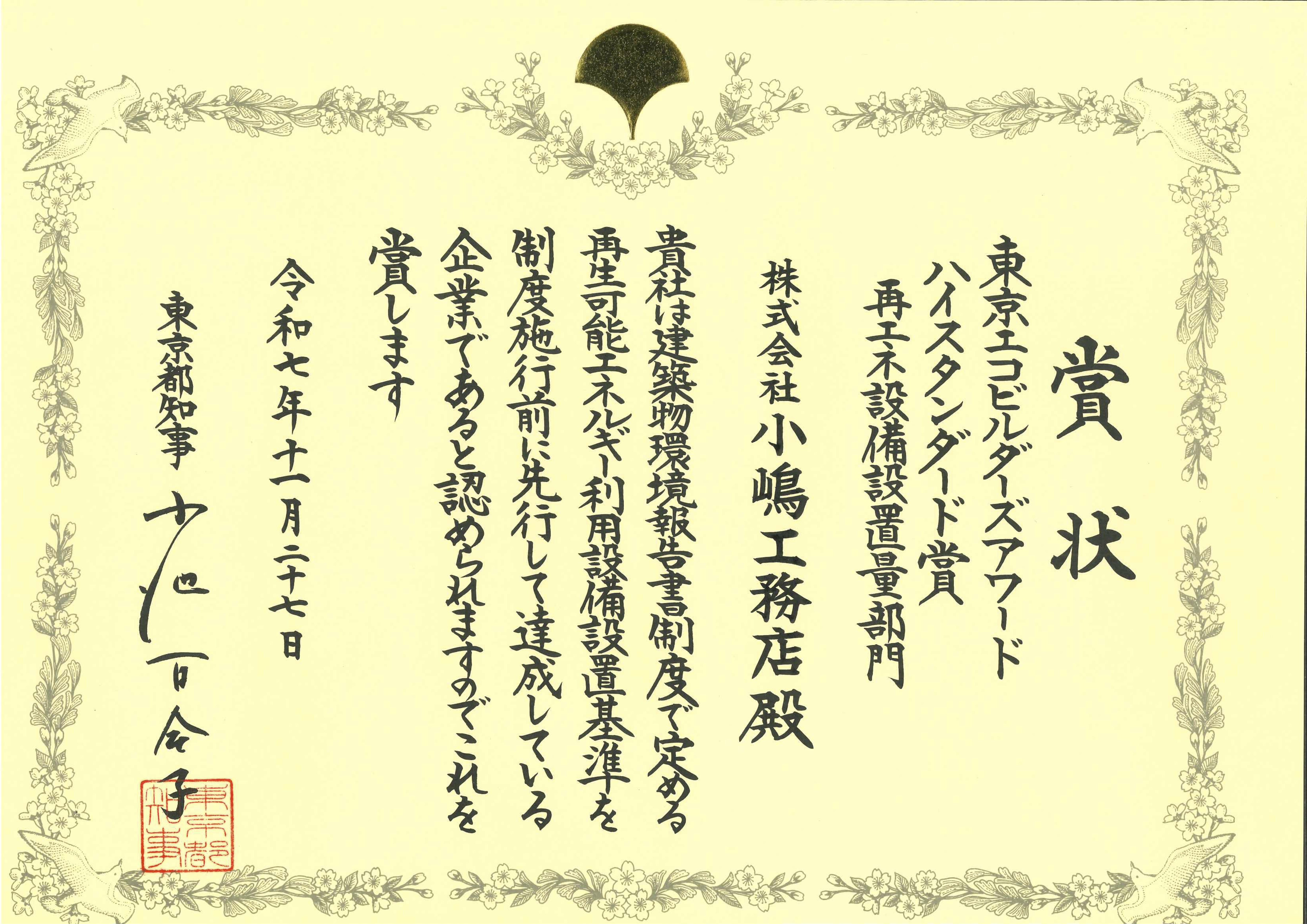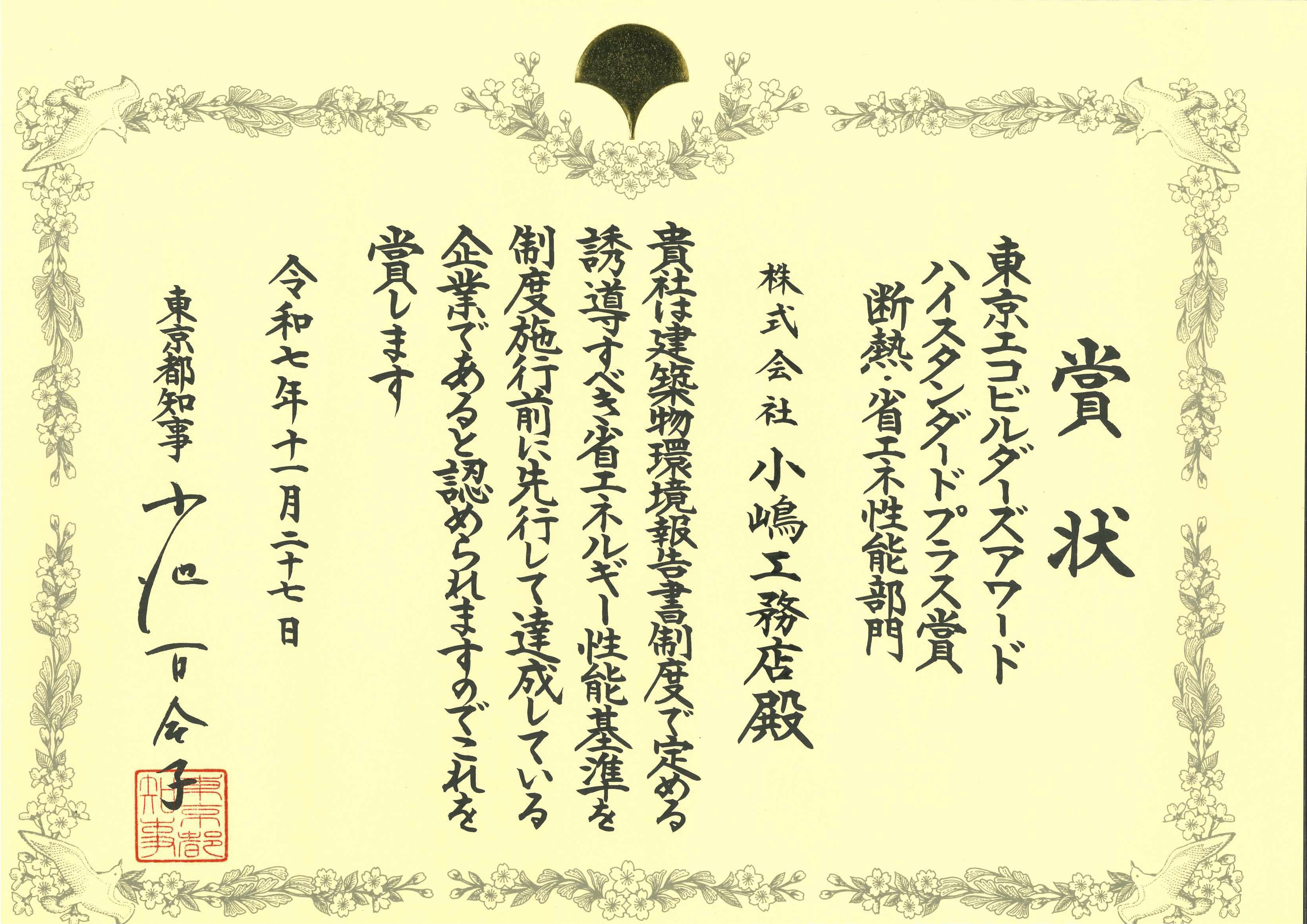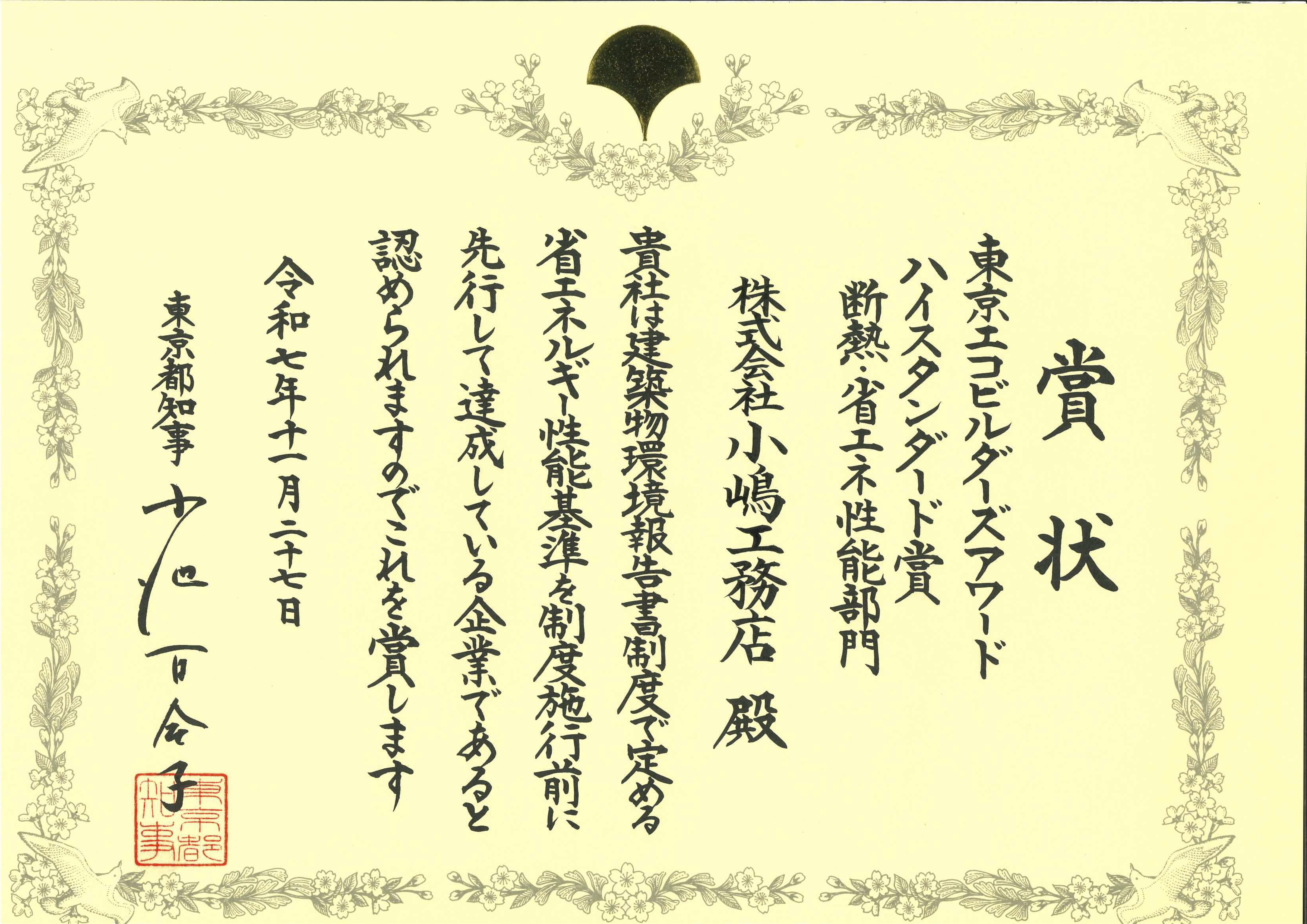 東京都が令和7年度より開始した「建築物環境報告書制度」に基づき、環境性能の高い建築物の普及に積極的に取り組む事業者を表彰する『令和7年度 東京エコビルダーズアワード』の受賞企業が発表されました。このたび小嶋工務店は、3部門での受賞という評価をいただきました。