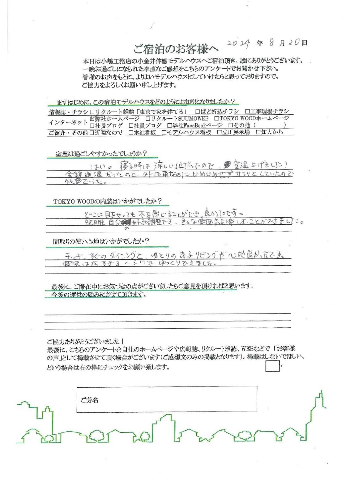 「モデルハウス宿泊体験」のお客様アンケートは、現在準備中です。