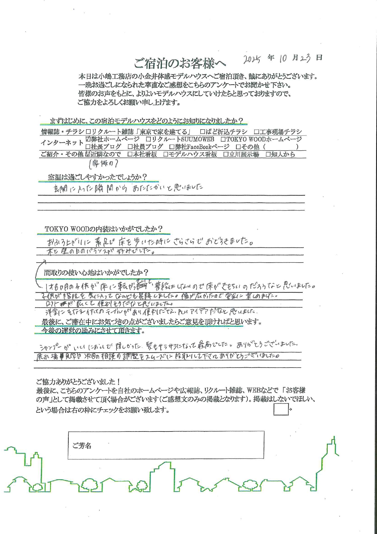 「モデルハウス宿泊体験」のお客様アンケートは、現在準備中です。