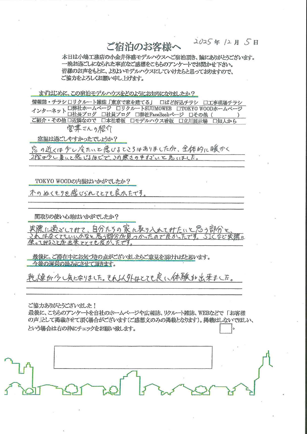 「モデルハウス宿泊体験」のお客様アンケートは、現在準備中です。