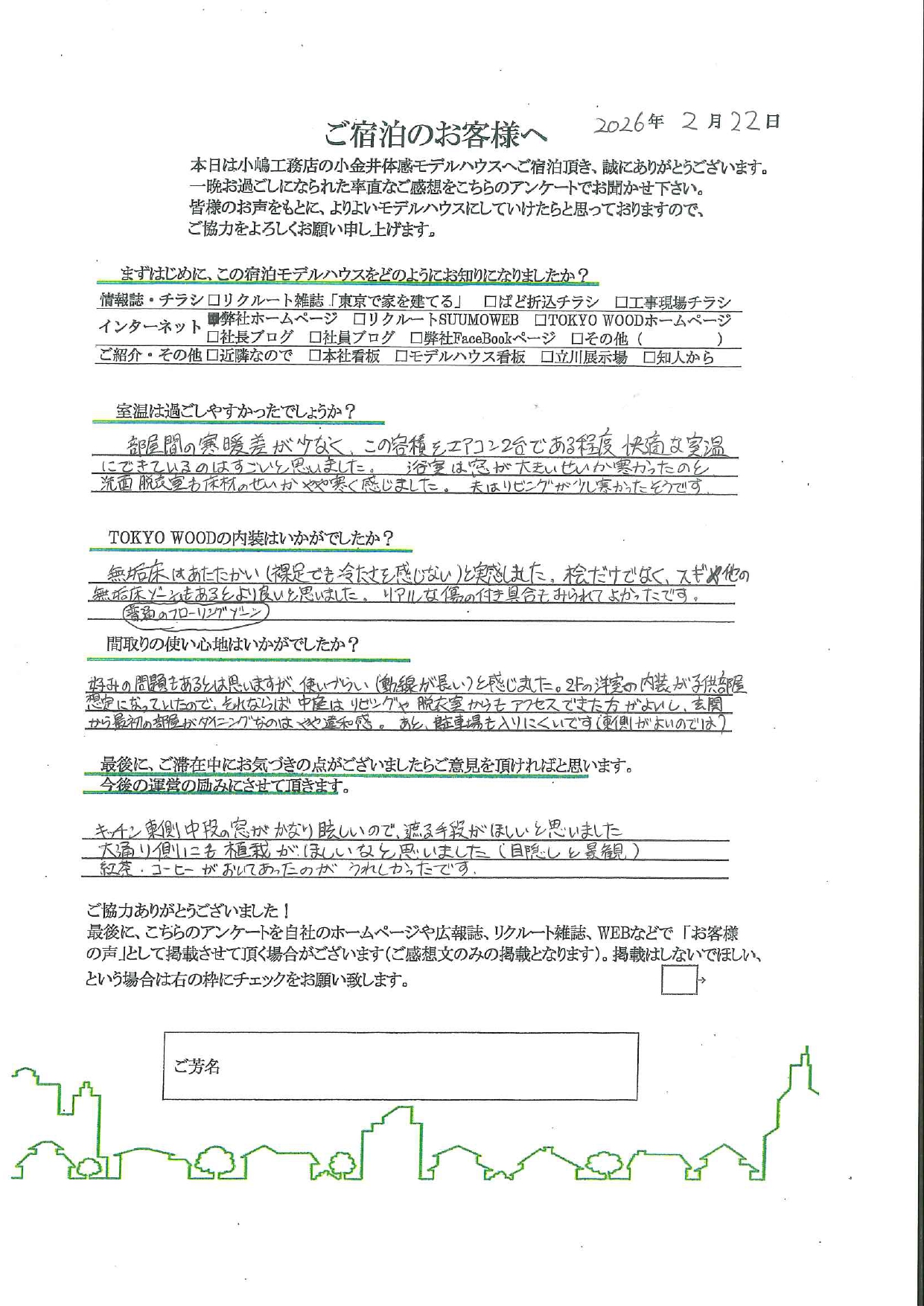 「モデルハウス宿泊体験」のお客様アンケートは、現在準備中です。