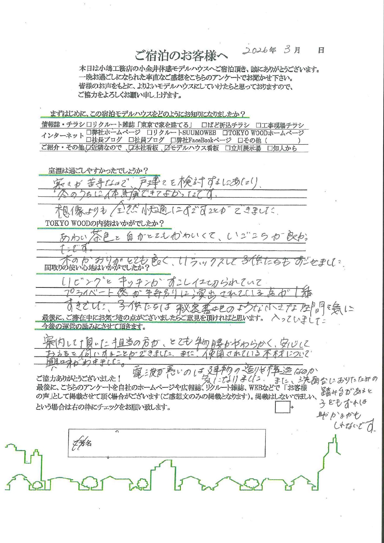 「モデルハウス宿泊体験」のお客様アンケートは、現在準備中です。