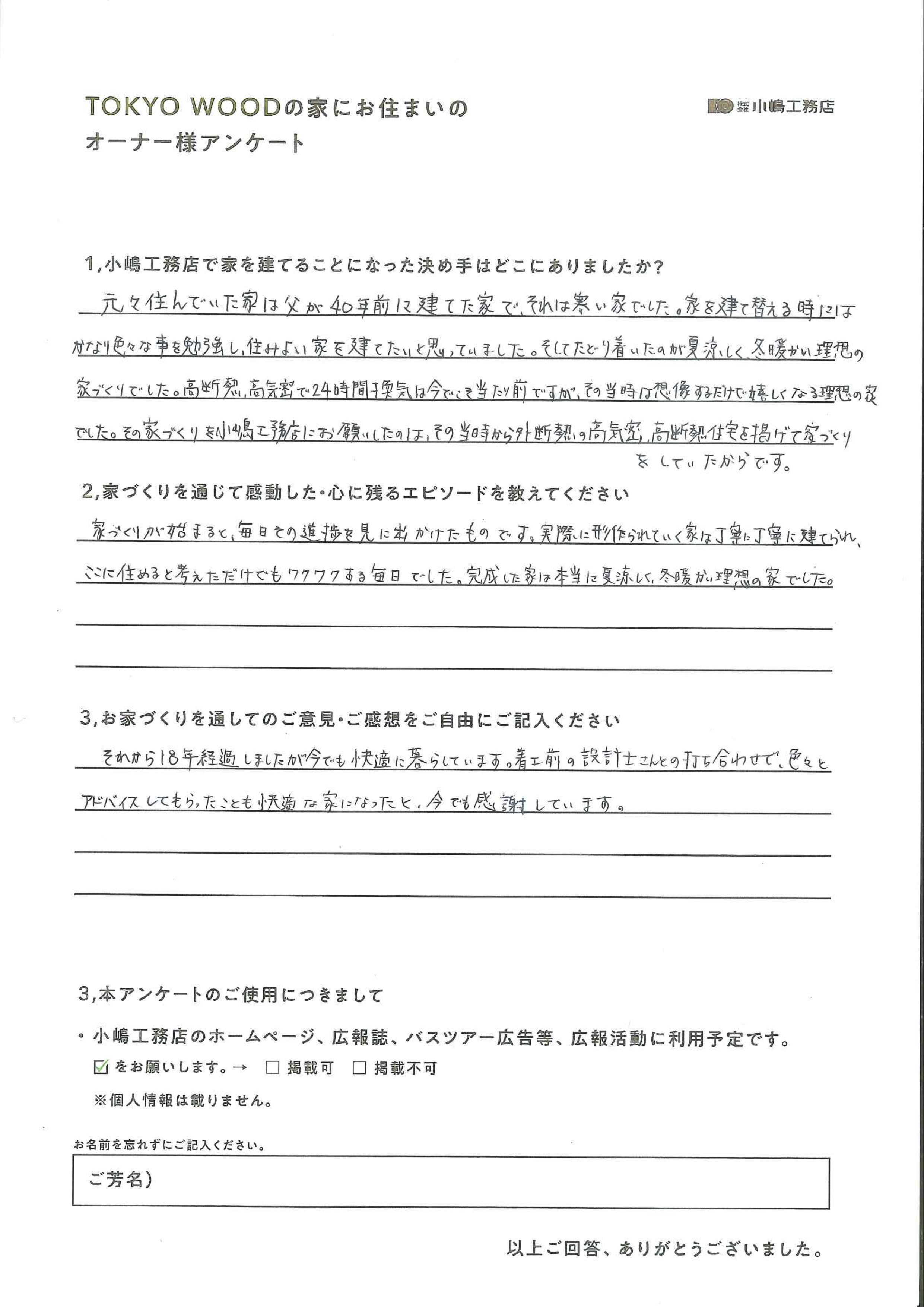 それから18年経過しましたが今でも快適に暮らしています。着工前の設計士さんとの打ち合わせで、色々とアドバイスしてもらったことも快適な家になったと、今でも感謝しています。