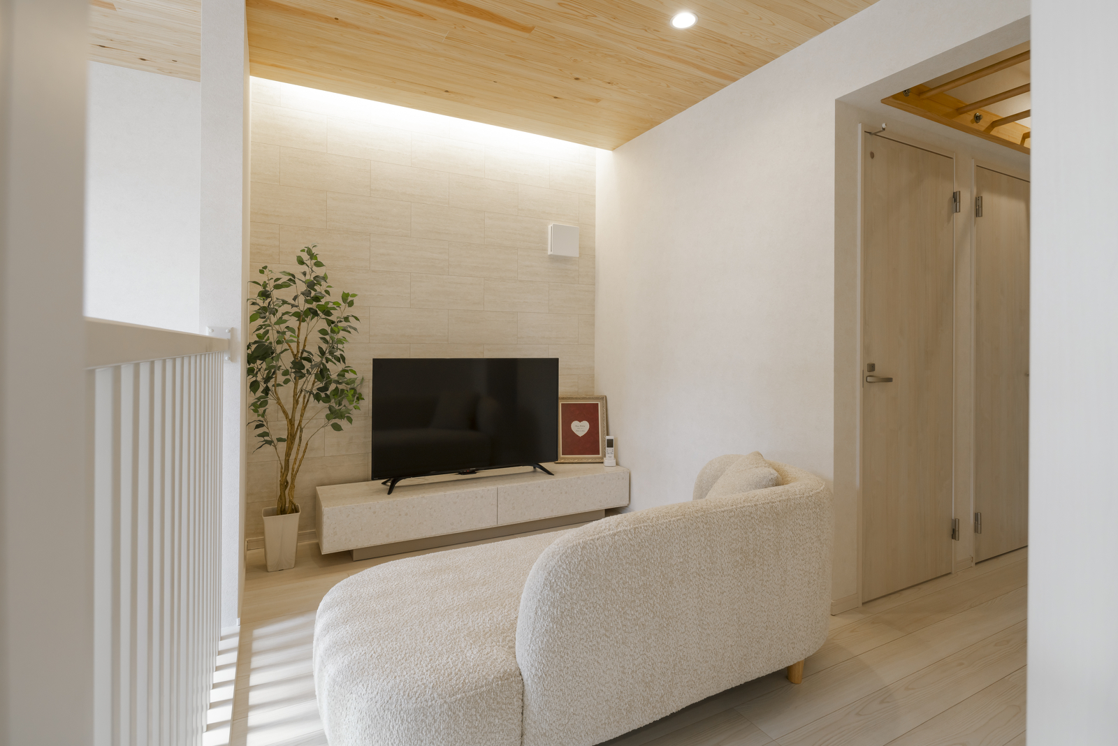 共有スペースとは別に、二世帯ならではの設計にも注目です。「1階にLDKや水まわりをまとめていますが、私たち用の個室も作って、将来的には1階で生活のすべてを完結できるようにしてもらいました」と、Kさんご夫婦のシニアライフまで見据えた間取りをご提案。2階には娘さんご夫婦専用のセカンドリビングを設け、二世帯それぞれの暮らしも大切にしながら、気兼ねなく暮らせるように配慮しています。