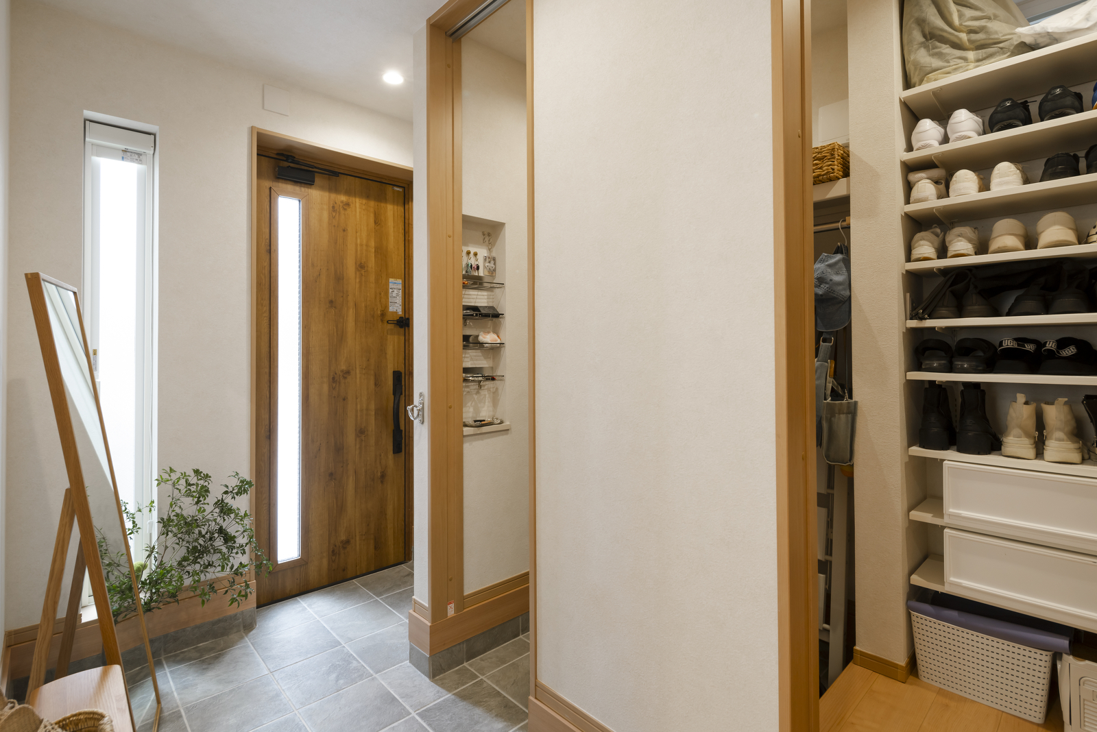 「以前の家は冬になると家の中でも吐く息が白く、手がかじかむほど寒かったので、外断熱工法の高気密・高断熱も決め手になりました。引越しした時はまだ暑い季節だったのですが、湿気を感じず、エアコンとシーリングファンだけでも快適でした。幹線道路が近いのですが、騒音も聞こえなくなり、とても静かに過ごせていいですね」と、快適性がアップしたことにも満足されているKさん。ご実家の面影を引き継ぎつつ、二世帯のご家族で新たな暮らしを育み、お住まいへの愛着をいっそう深めていかれることでしょう。