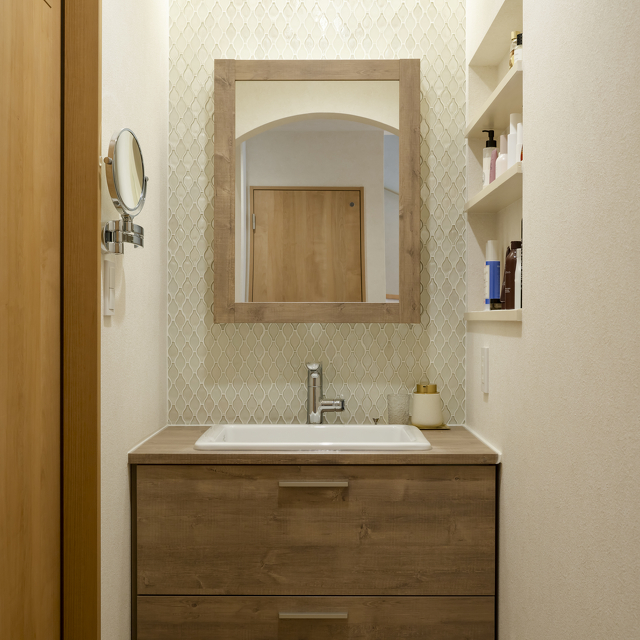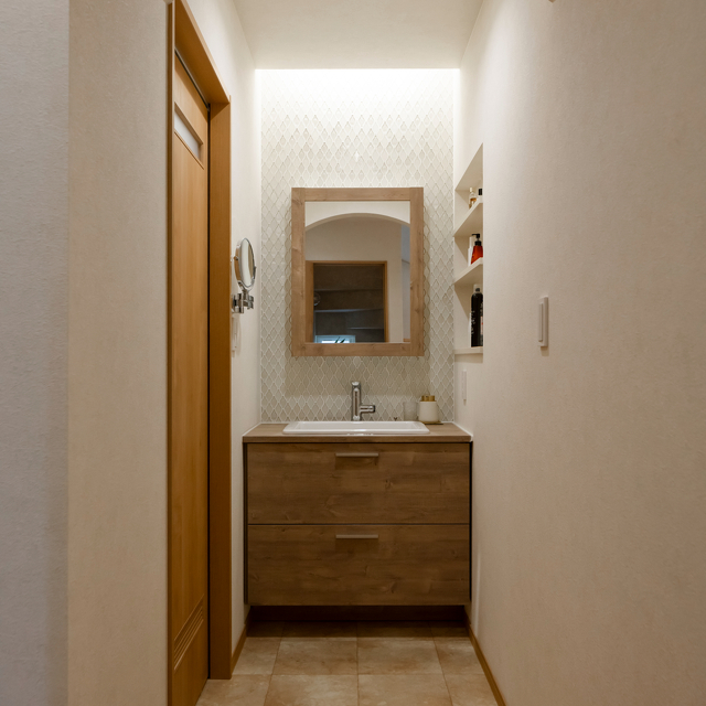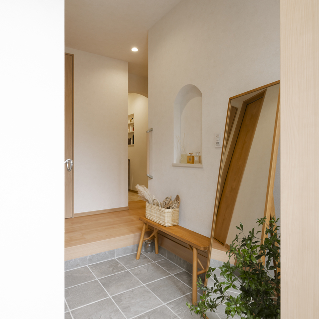 「両親と二世帯で暮らしていた実家が築40年以上経ち、建て替えるいいタイミングだったこともあり、近くに住んでいた娘夫婦と同居しようかと自然に話がまとまりました」と、家づくりのきっかけを語ってくださったKさん。お話を伺っている際も、娘さんの旦那様とまるで本当のお子さんのように仲むつまじく接しておられたので、二世帯での同居がスムーズだったこともうなずけます。