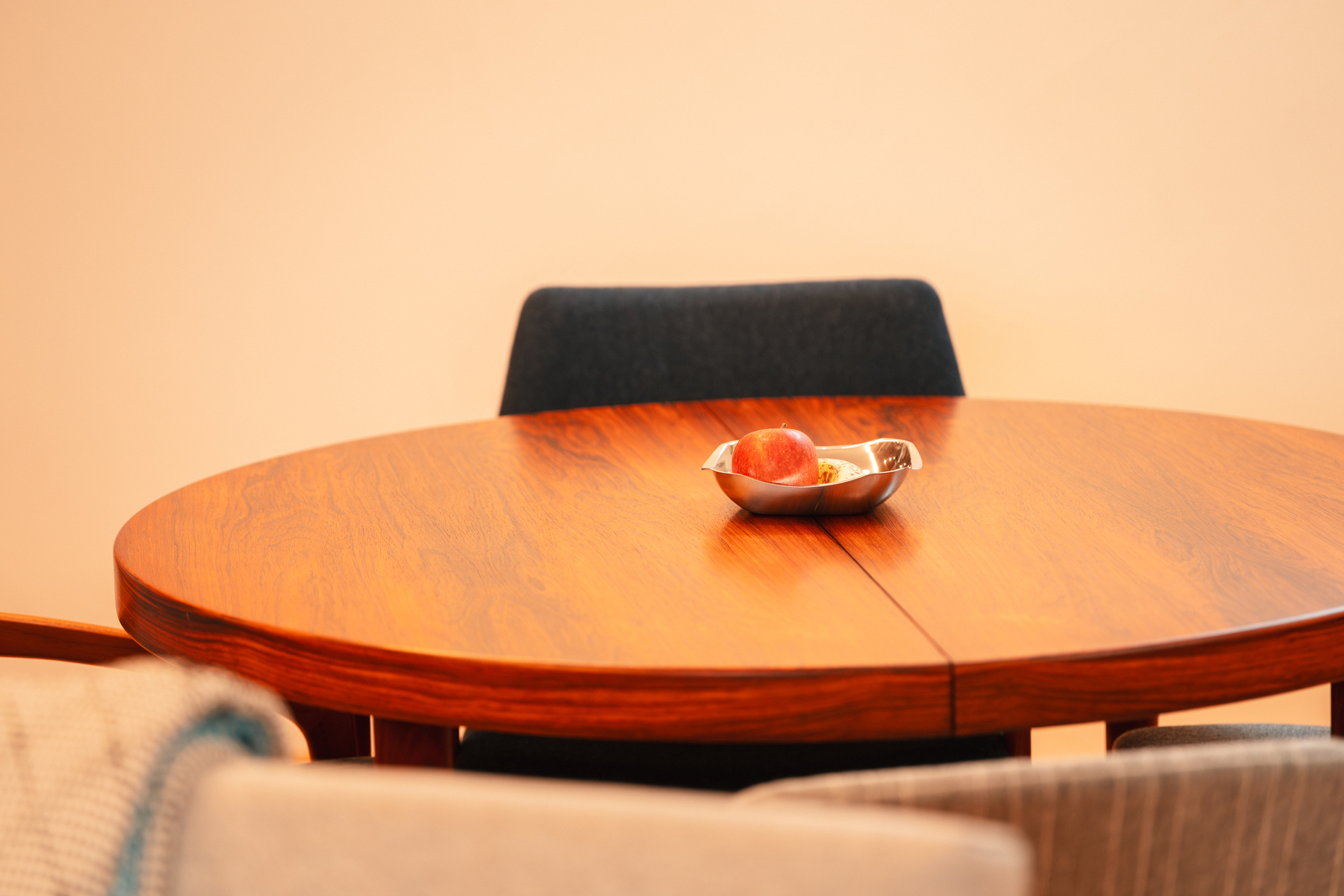 さらにもうひとつの魅力は、『TOKYO WOOD』の桧の床や漆喰の壁、ブラックチェリーの天井、無垢材の建具などの風合いある自然素材を基調に、落ち着いたデザインの家具やファブリック、柔らかな質感の照明などを巧みに組み合わせた、大人のシック&ナチュラルなインテリアコーディネート。以前はエレガントな欧風のお住まいでしたが、新しい家は今のご夫婦のスタイルに合わせて、素材感ある北欧テイストをセレクト。建築士が紹介したアンティークショップや奥様が探し出したインテリアショップで家具や照明などを厳選し、懐かしさと上品さを併せ持った、年を重ねるほどに愛着が深まる空間を演出しました。