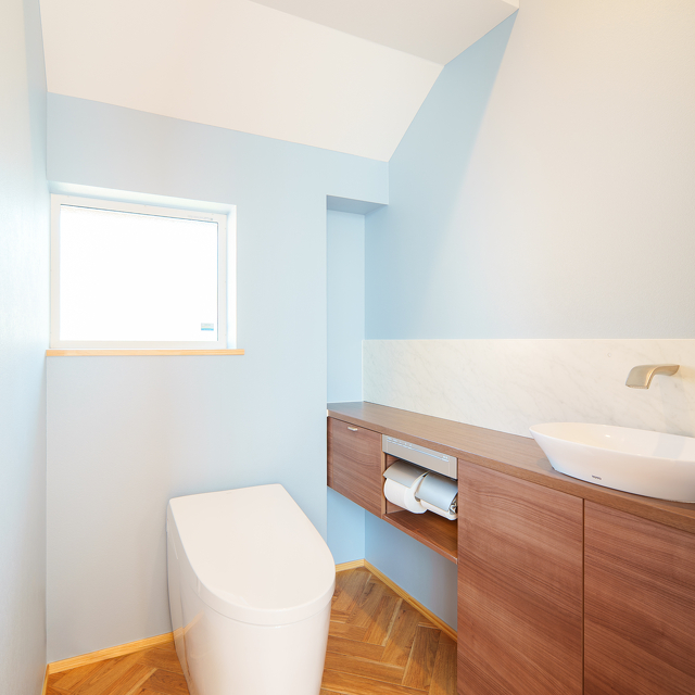 「小嶋工務店さんは、ネットで建築会社を探していた時に出会いました。デザインが好みだなと思ったのが最初です」と語るYさん。その後小金井モデルハウスを訪れ、木のぬくもりに包まれた空間に心惹かれたそうです。「前の家はセミオーダーだったので、自分たちの理想を完全には反映できませんでした。その点、小嶋工務店さんはフルオーダー仕様。すべてにこだわれるというのも重視しましたね。あと、寒さの厳しい地域に住んでいたのですが、冬になると場所によって室温にムラができるのも気になっていて。ソーラーサーキット工法とベース空調システムの組み合わせによって、エアコン一台で家全体の温度が快適になることも決め手になりました」